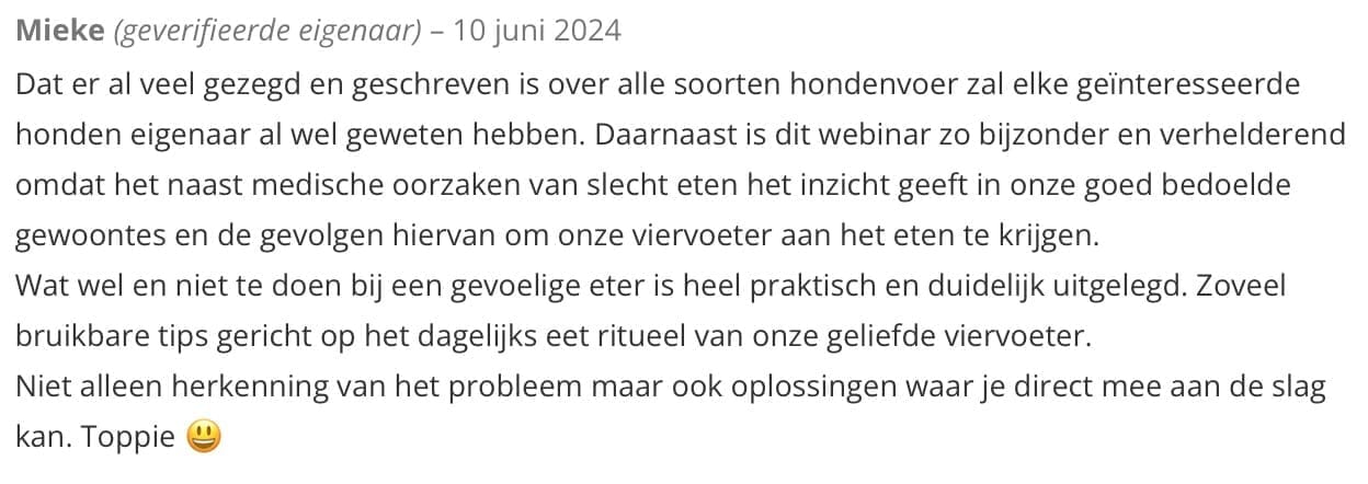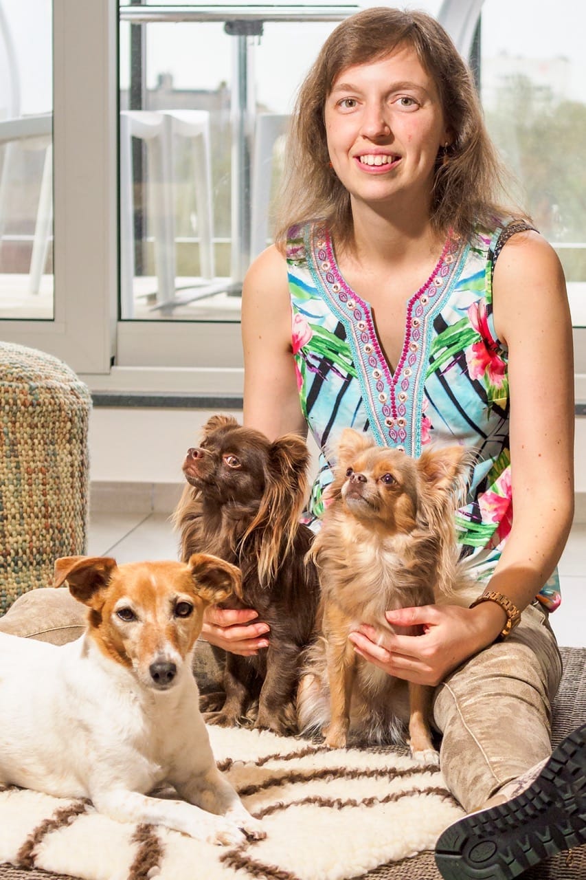 Daarnaast is ’snel even zoeken wat kan helpen’ onhaalbaar. Er is een kluwen aan info op het internet van wisselende betrouwbaarheid, waarin je moeilijk het onderscheid ziet. Het vinden van een juist voedingspatroon voor je hond kan lang duren, als je niet gericht te werk gaat. Ik wou Moes het beste kunnen bieden én tegelijk ervoor zorgen dat anderen deze strijd niet opnieuw moesten strijden met hun hond. Ik verdiepte mij in eerste plaats in vakliteratuur en het internet en besloot uiteindelijk een professionele opleiding te volgen tot ‘Canine and Feline Nutritionist’ aan de Amerikaanse universiteit, Southern Illinois University en slaagde als eerste van de klas.